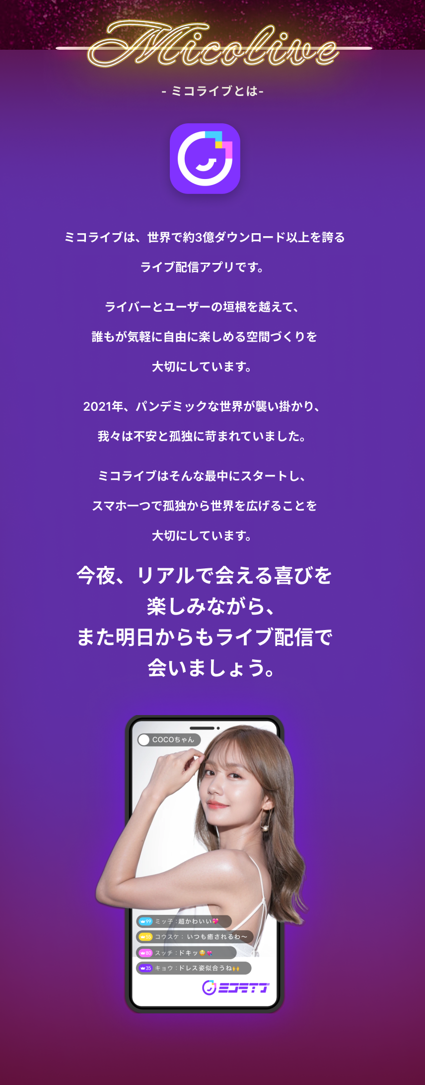 ミコライブは、世界で約3億ダウンロード以上を誇る