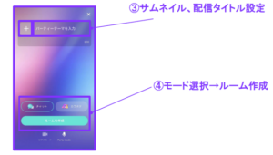 配信タイトル(パーティーテーマ): 配信の内容がひと目で伝わるよう、テーマを簡潔に書きましょう✍ - モード設定